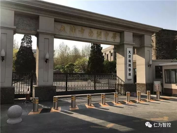 中学所有的校园出入口都配备升降地柱守护,有效防范车辆冲撞事故的发生。